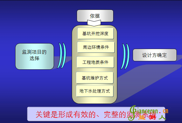 應(yīng)針對監(jiān)測對象的關(guān)鍵部位,做到重點(diǎn)觀測、項(xiàng)目配套并形成有效的、完整的監(jiān)測系統(tǒng)
